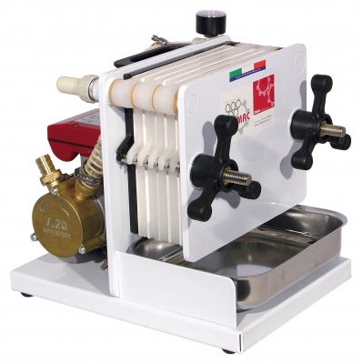 La serie di filtri è composta da apparecchi con capacità di filtraggio da 80 a 1.900 litri di vino l’ora. Vengono montate elettropompe in acciaio inox del tipo centrifugo per tutti gli usi, tranne per filtrare l’olio di oliva che necessita di pompe del tipo monovite o a girante in nitrile.